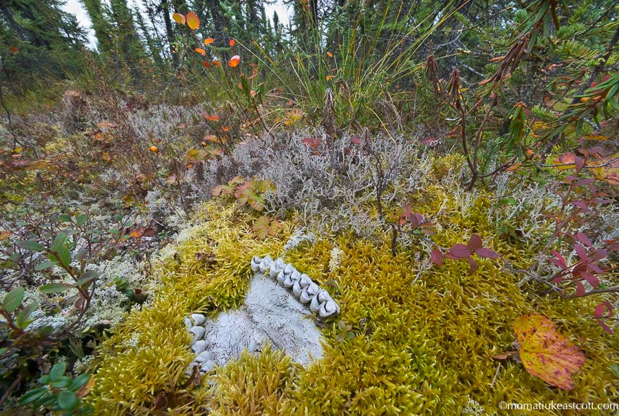And a well preserved caribou's lower jaw, with its set of powerful molars and ridge surfaces designed to crush and grind tough vegetation of the Arctic.