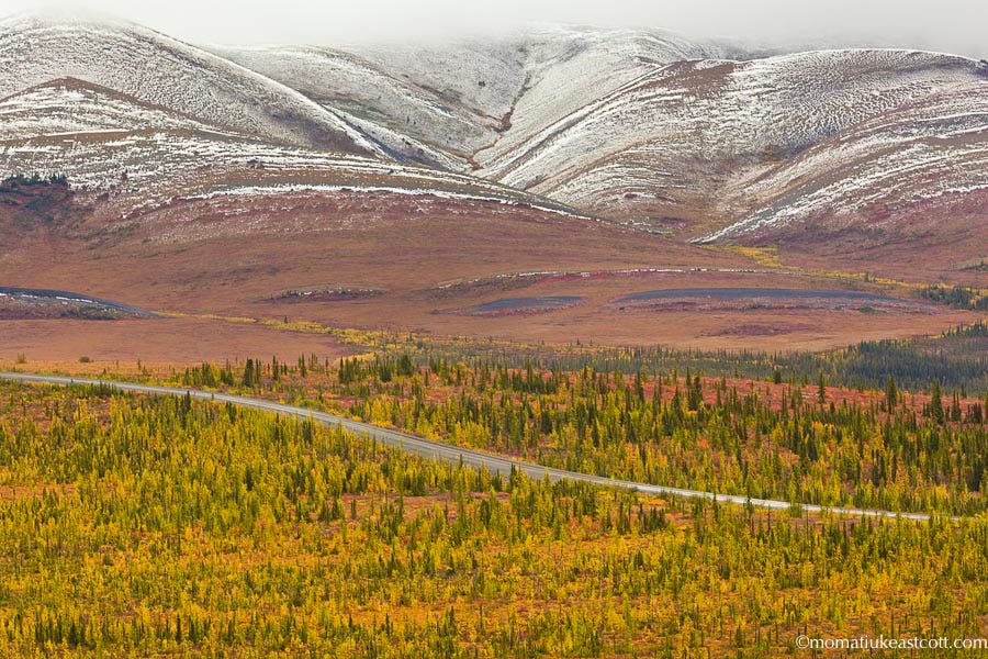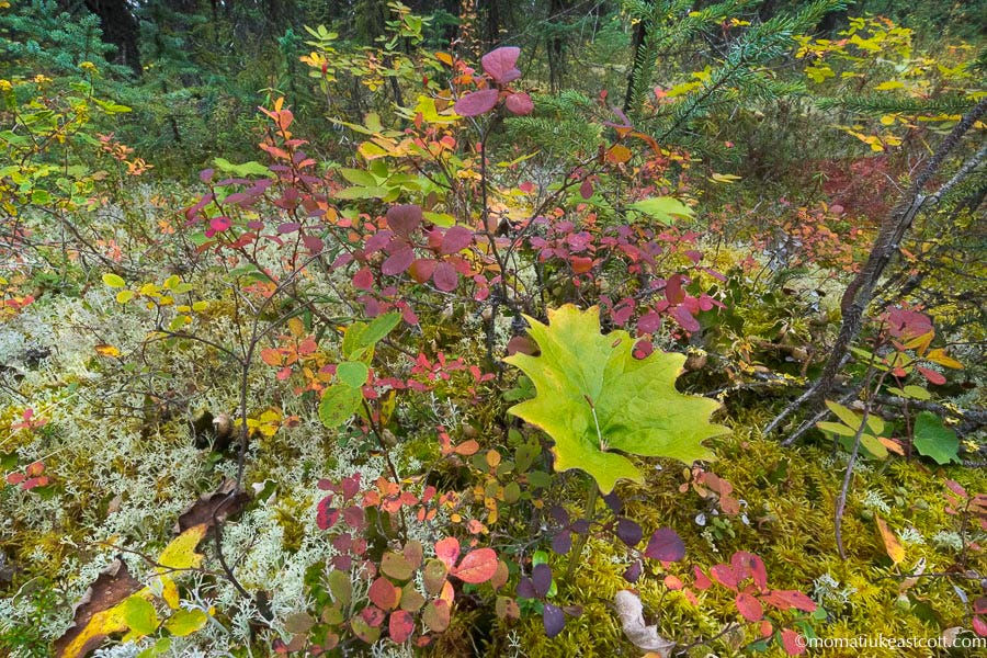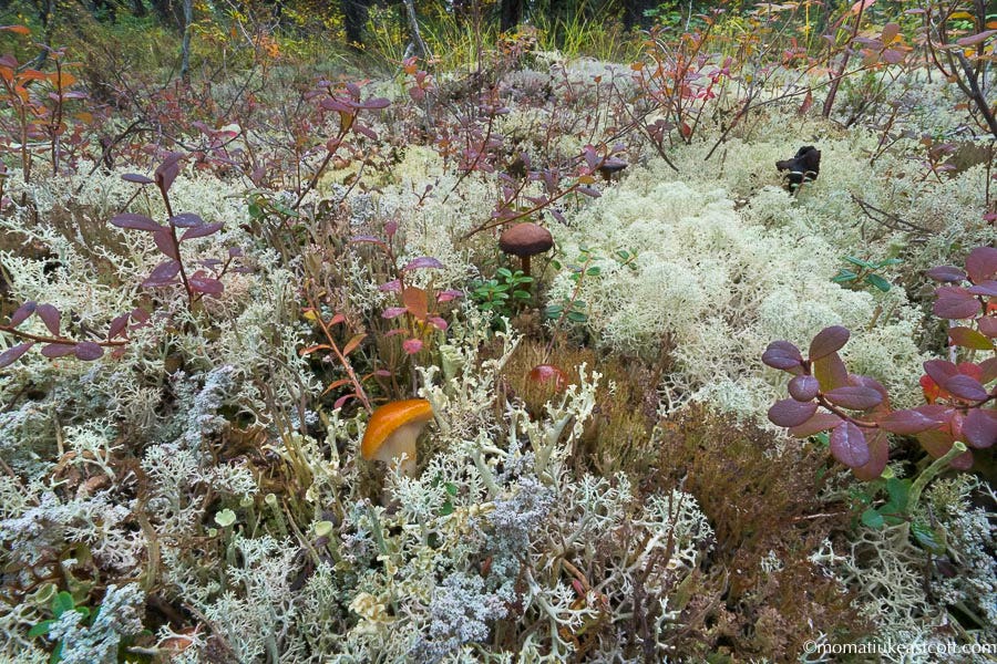 In a few weeks the colors here will dim, so we often park and enter the woods soundlessly, with our boots stepping on spongy-soft caribou lichens.