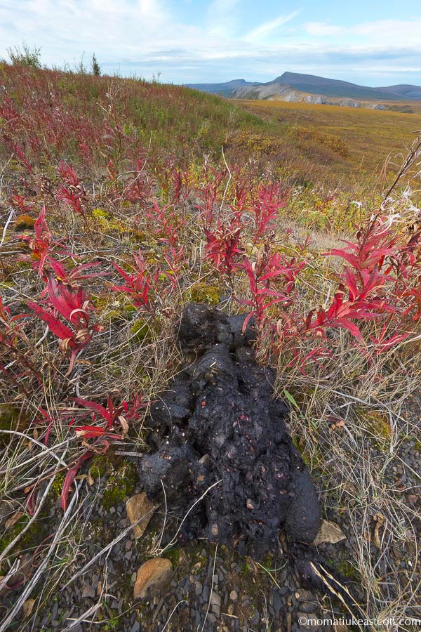 And bear scat, fresh and moist, nearby. A vegeterian's delight, with lots of berries.
