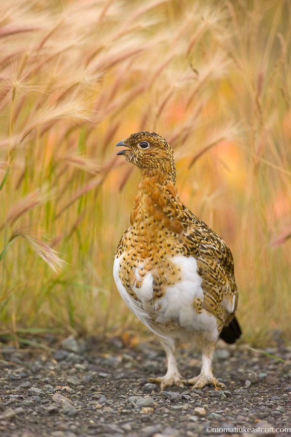 Aha! a ptarmigan, alarmed but not enough to flee.